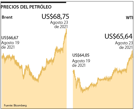 El barril de petróleo WTI ganó US$3,50 con un precio de US$65,64, el de referencia Brent subió US$3,57, cerrando en US$68,75