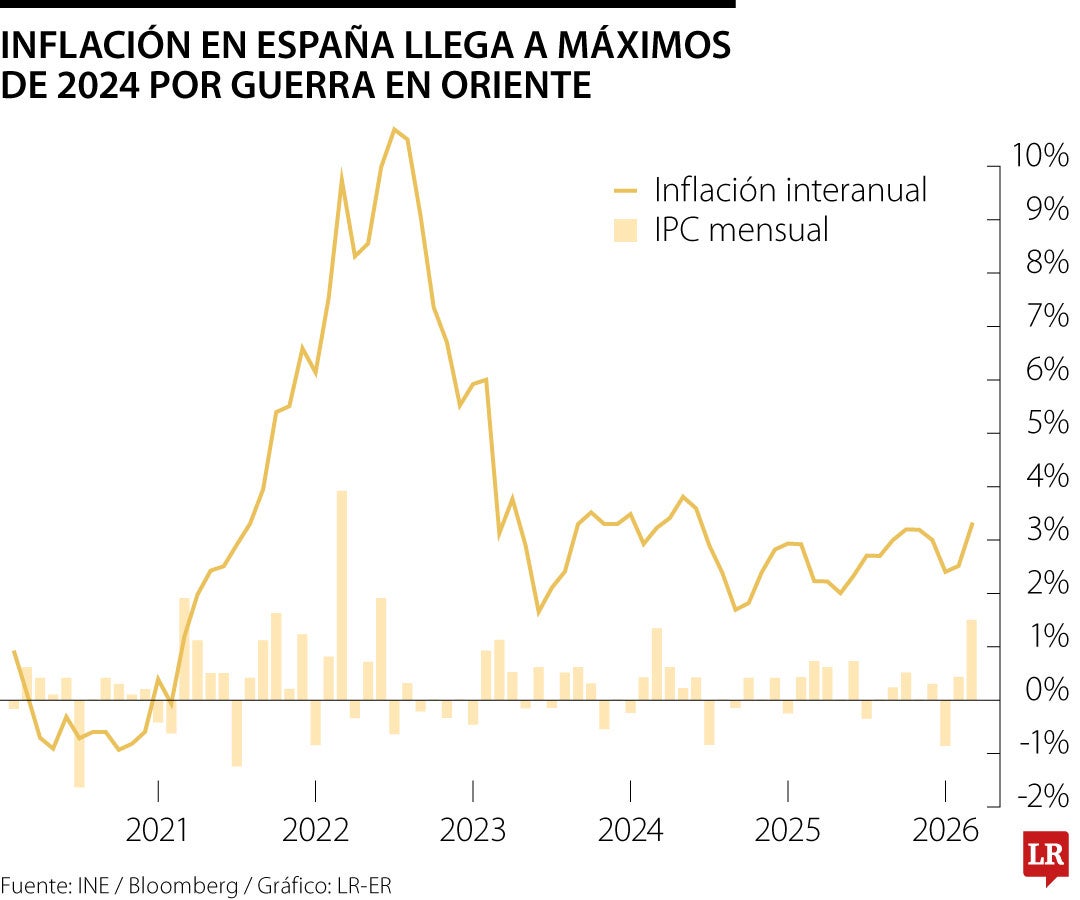 La inflación española se disparó a su nivel más alto desde junio de 2024 debido a la guerra con Irán, lo que respalda la necesidad de que el Banco Central Europeo suba los tipos de interés.