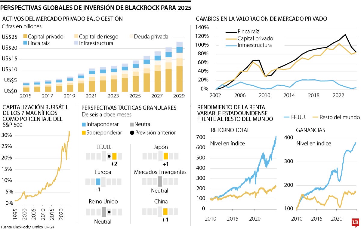 A semanas de que se termine el año, BlackRock presenta sus Perspectivas Globales de Inversión para 2025. Partiendo de la afirmación de la gestora acerca de que “desde 2020 ya no estamos en un ciclo económico tradicional” sino que hay megafuerzas que están derrumbando las tendencias históricas, le advierte a los inversionistas que para el próximo año, se deben enfocar en oportunidades temáticas relacionadas a la inteligencia artificial y la fragmentación geopolítica, en lugar de optar por enfoques tradicionales por países.