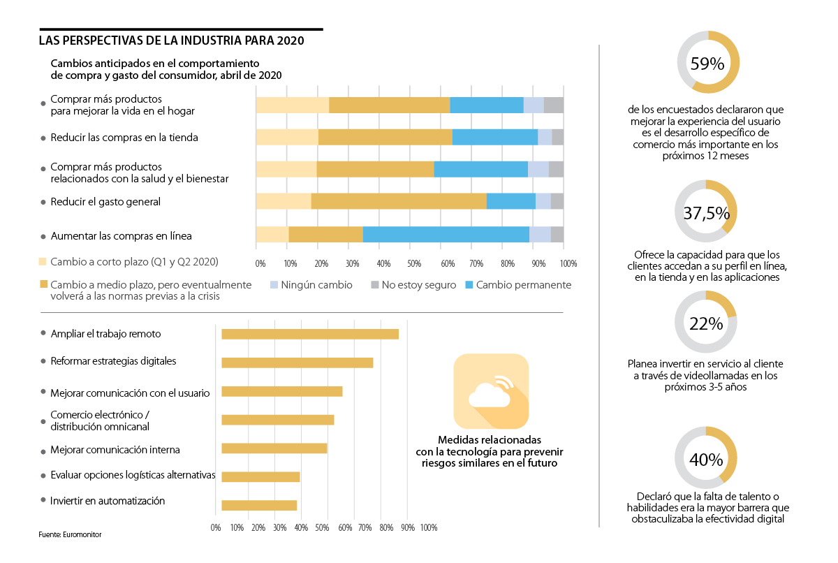 Una de las tendencias que aceleró la crisis generada por este patógeno es la de la apuesta por la digitalización. Una muestra de esto es que 59% de los encuestados por Euromonitor aseguraron que mejorar la experiencia de los usuario es el desarrollo específico de comercio más importante para los próximos 12 meses.
