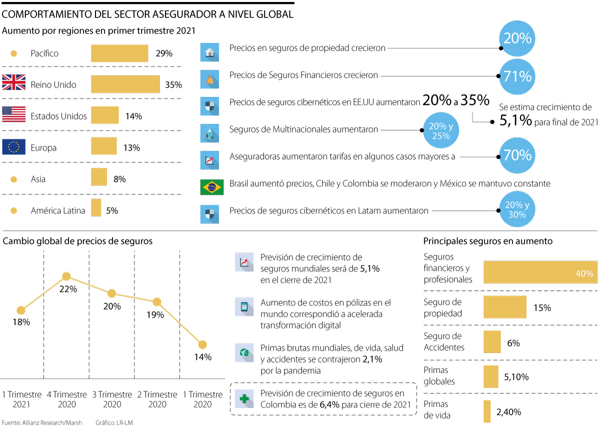 Según Wilson Triana, experto y consultor en banca y seguros, el golpe de la pandemia en el mundo provocó el alza en la demanda y los costos de seguros a nivel mundial, pues las dinámicas de distanciamiento obligaron a las empresas a acelerar su transformación digital, implementando nuevos desarrollos que sin duda elevaron los costos de operación.