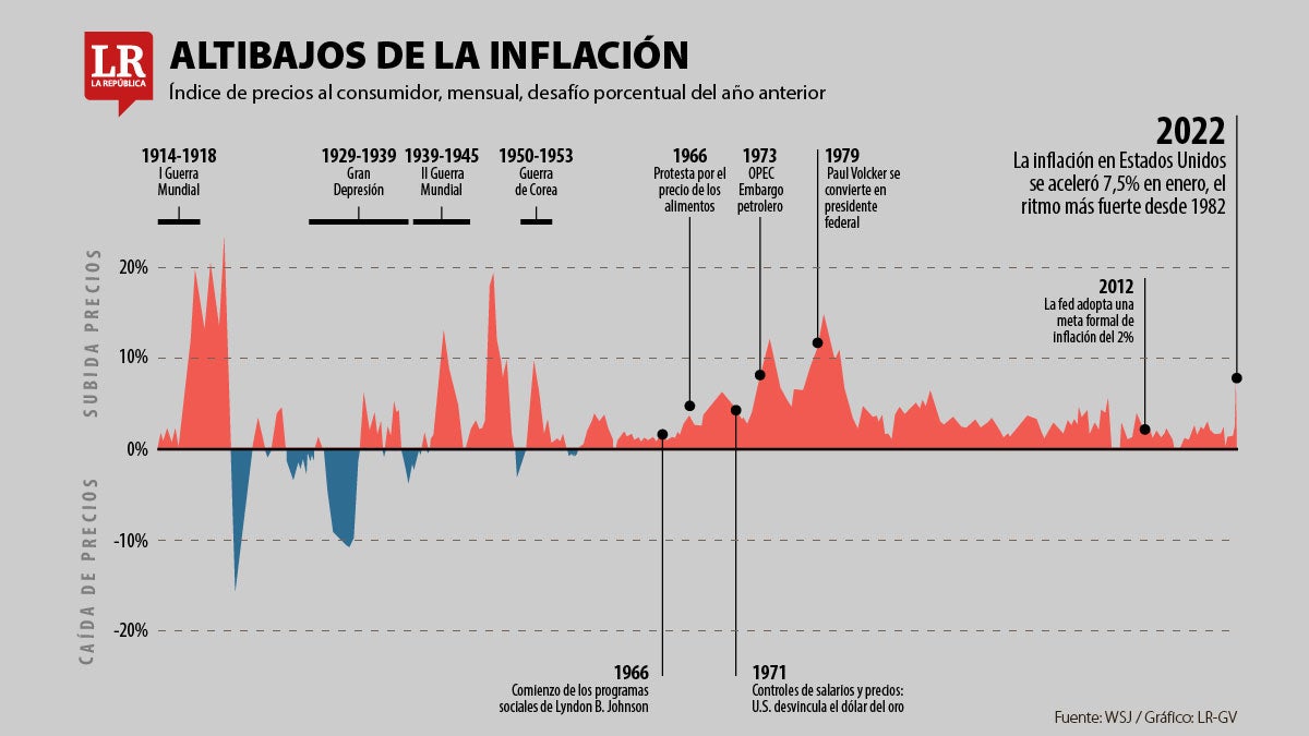 No es el único caso entre las economías avanzadas, la inflación de Estados Unidos llegó a 7,5% interanual, el mayor aumento desde febrero de 1982, impulsada por la escasez de suministros y trabajadores, las ayudas suministradas por el Gobierno, los tipos de interés ultrabajos y el fuerte gasto de los consumidores.