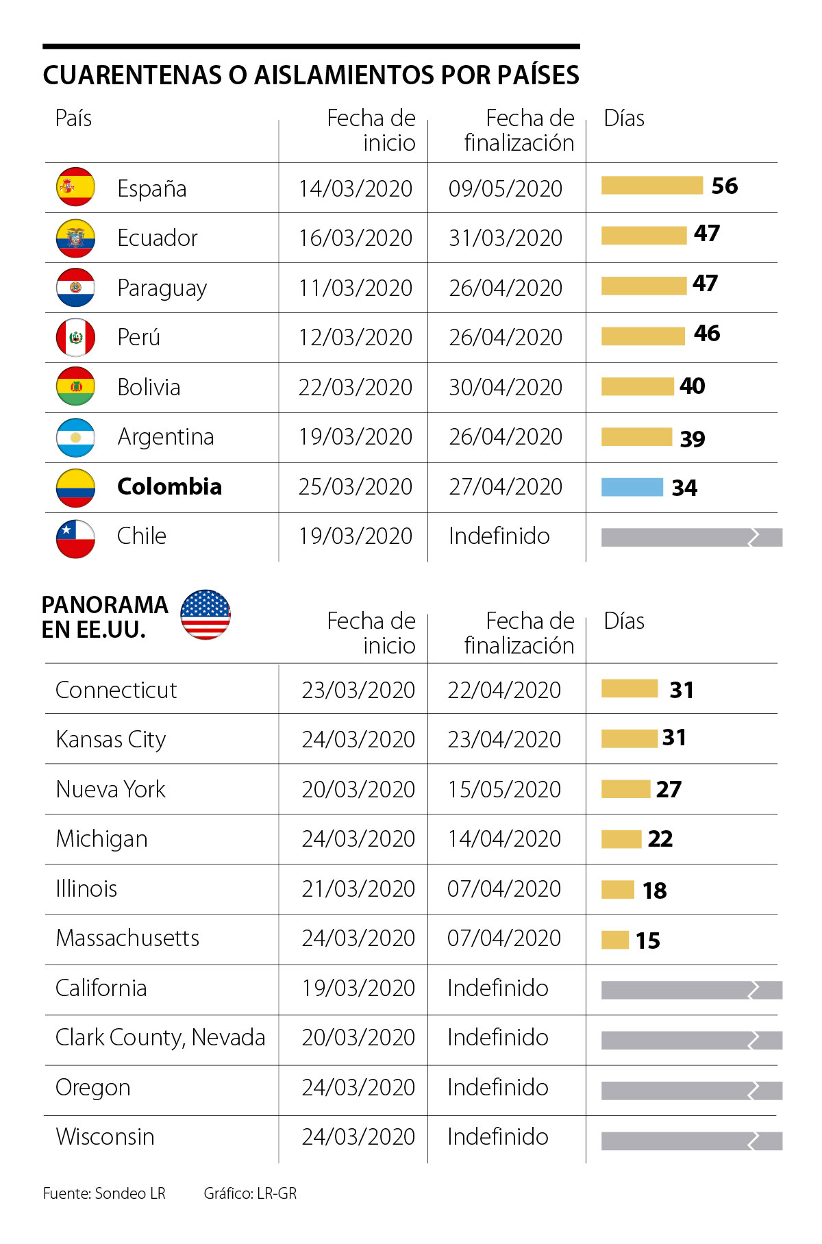 A esta lista de países que buscan salir de la cuarentena sin dejar de lado la lucha por mantener la prestación de los servicios de salud y evitar las muertes masivas se le suman naciones en América Latina como Colombia, Chile, Brasil, Uruguay y Perú, países que ya llevan más de 30 días con algún tipo de medida de aislamiento en sus territorios.