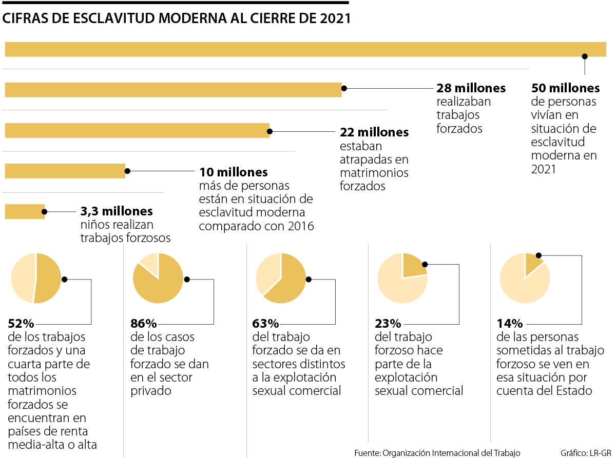 De este total, 28 millones realizaban trabajos forzados y 22 millones estaban atrapadas en matrimonios forzados