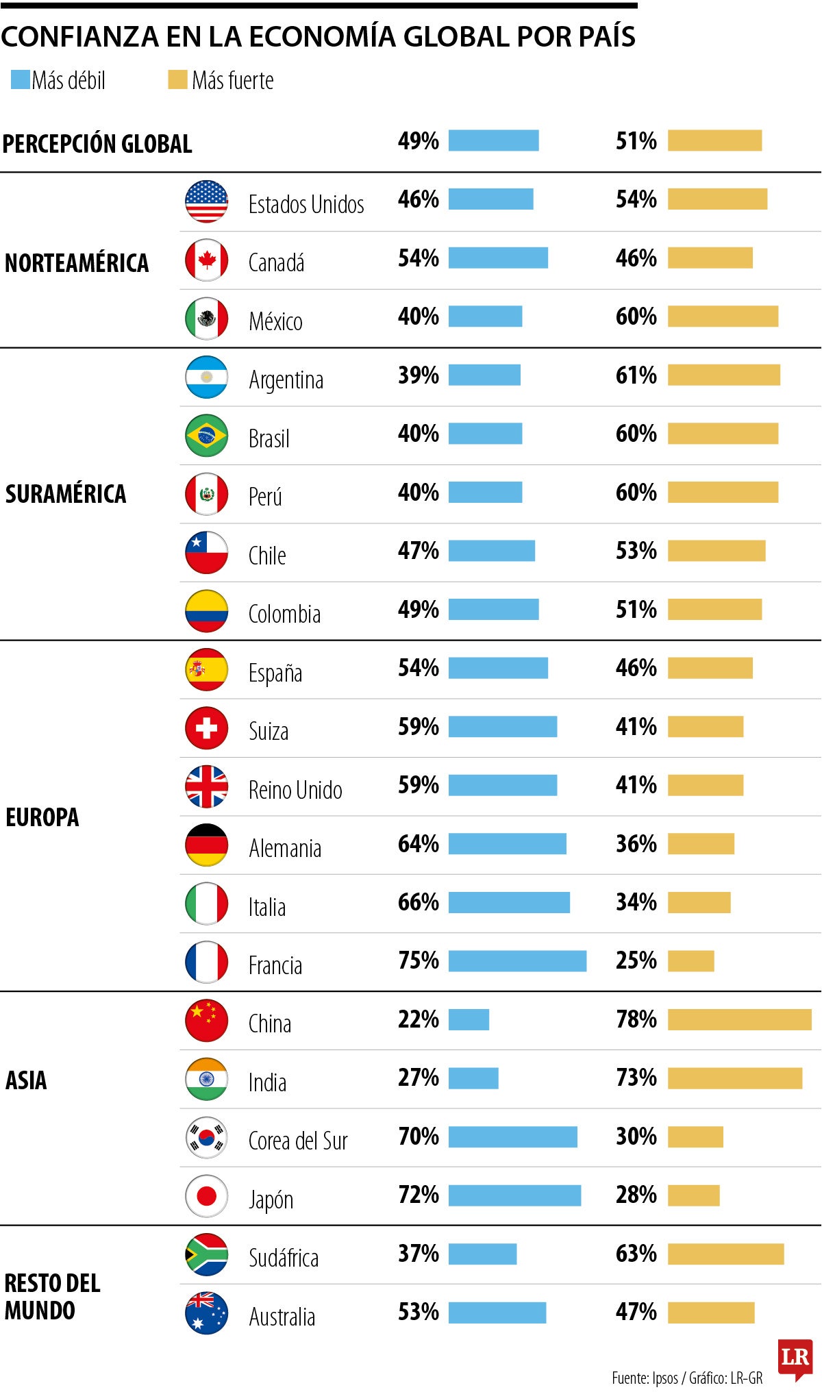 En Suramérica todos los países del estudio confían en que la economía será más fuerte, Argentina con 61% el que más y Colombia con 51% el que menos. En Brasil y Perú fue 60%, en Chile 53%.