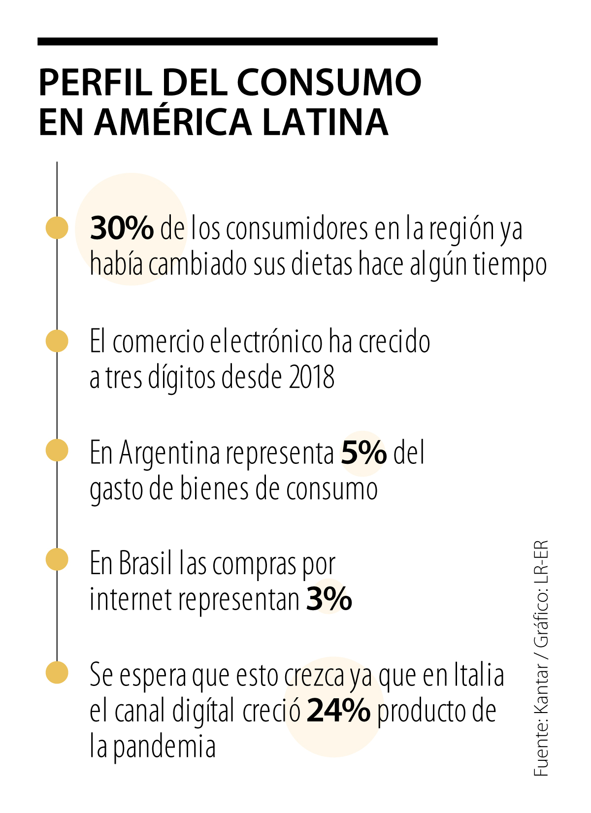 Aunque aún no se tiene un reporte sobre cuál es el impacto que tendrá la cuarentena en el canal digital, Kantar estima que tendrá un crecimiento importante ya que el comercio electrónico ha estado aumentando a tasas de tres dígitos en Latinoamérica desde 2018, a tal punto que en Argentina representa 5% del gasto de bienes de consumo y en Brasil, 3%.