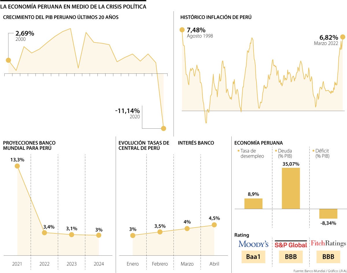 El presidente peruano Pedro Castillo apenas y sobrevivió a un segundo intento de juicio político en el Congreso, y solo días después tuvo que enfrentar una ola de protestas en las calles que avivaron los rumores de un nuevo juicio en su contra. La agencia calificadora Moody’s considera que Castillo, no terminará sus cinco años dirigiendo al país y que “será removido del cargo o renunciará”. También criticó los múltiples cambios del gabinete por el que han pasado 50 ministros en solo ocho meses.
