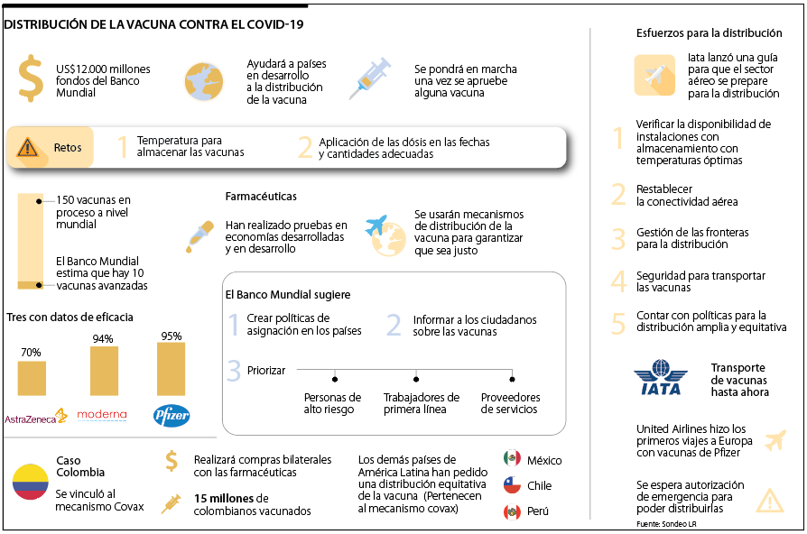 Según comentó el vocero del Banco Mundial, parte de los fondos que se darán a los países buscarían ayudarlos a tener la infraestructura adecuada para almacenar y distribuir las vacunas.