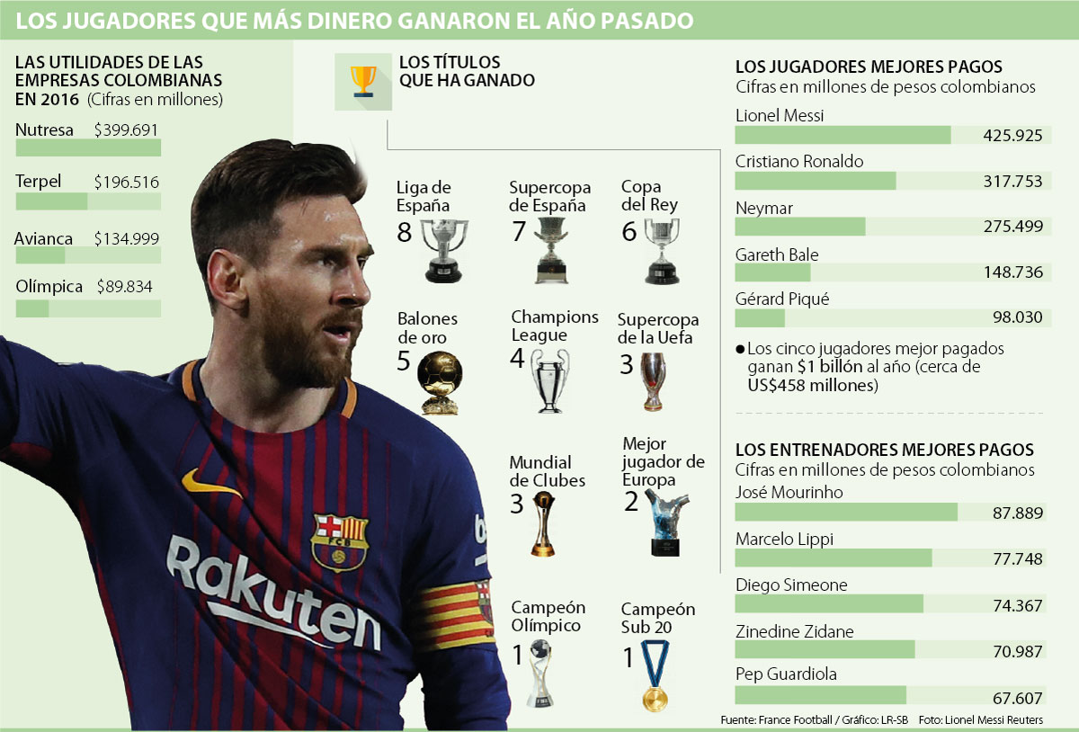 Con esto, el argentino ganó más que lo que obtuvieron juntas Terpel ($196.516 millones), Avianca ($134.999 millones) y Olímpica ($89.834 millones) y supera las utilidades del Grupo Nutresa ($399.691 millones) en 2016, el último año consolidado por la Superintendencia de Sociedades en Colombia.