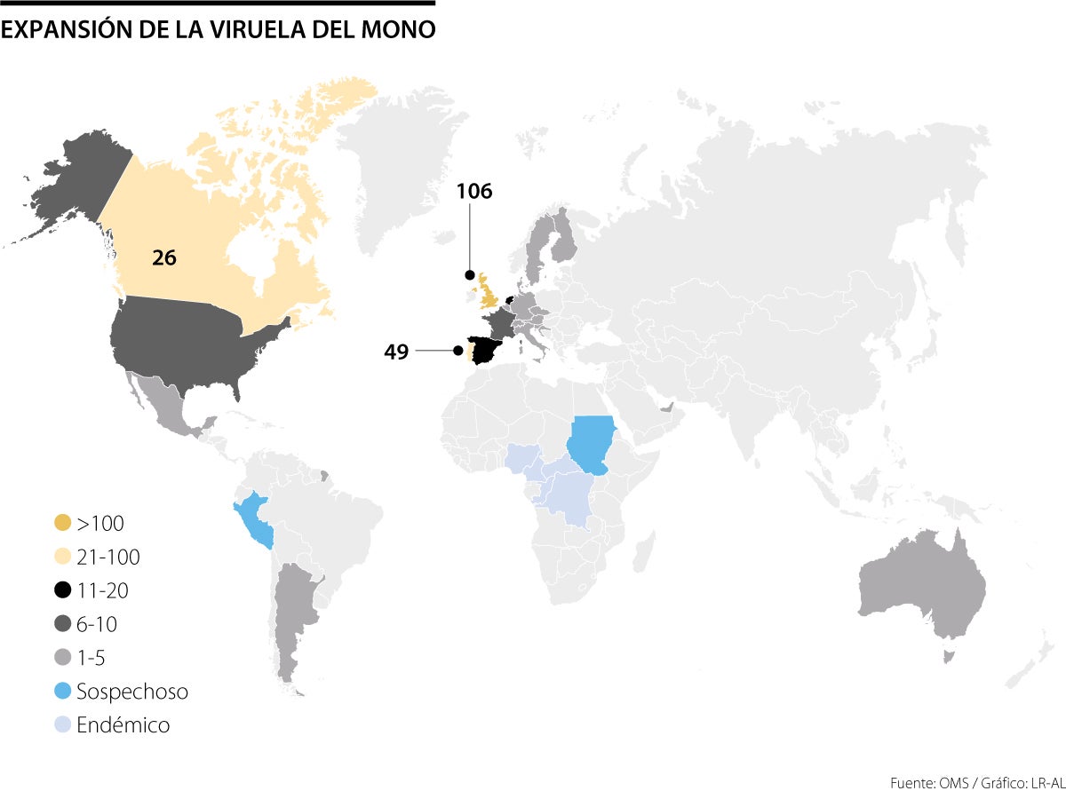 Hace casi 15 días Europa y Estados Unidos recibieron alertas de la Organización Mundial de la Salud (OMS) por la expansión de la viruela del mono, una enfermedad que es menos contagiosa y fatal que el covid-19, de la que además existen las vacunas. Hasta ahora la mayoría de países de la zona euro tienen niveles menores a 10 casos, mientras que en América, Canadá ha confirmado el número más alto de pacientes enfermos con 26 personas al corte del 31 de mayo.