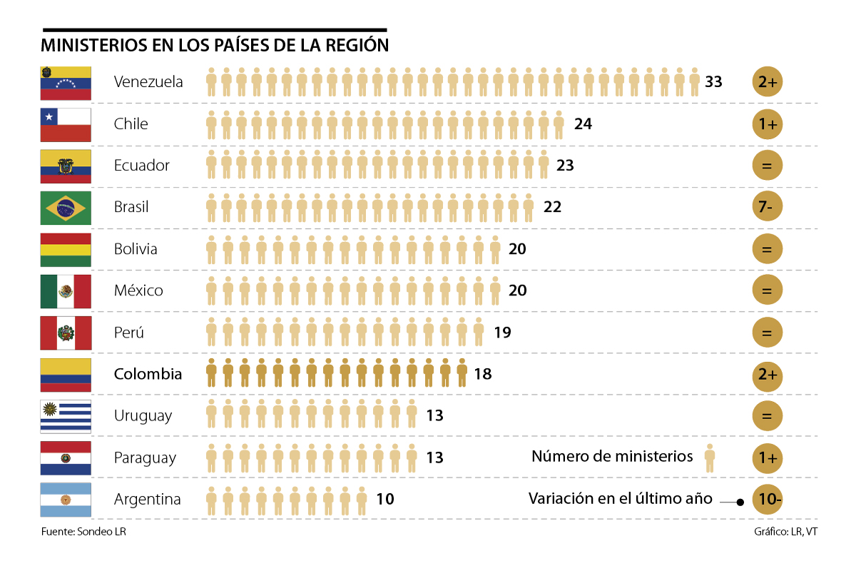 Pese a la creación del ministerio del deporte y el de ciencia, Colombia se mantiene como el cuarto país de la región con menos carteras, con un total de 18