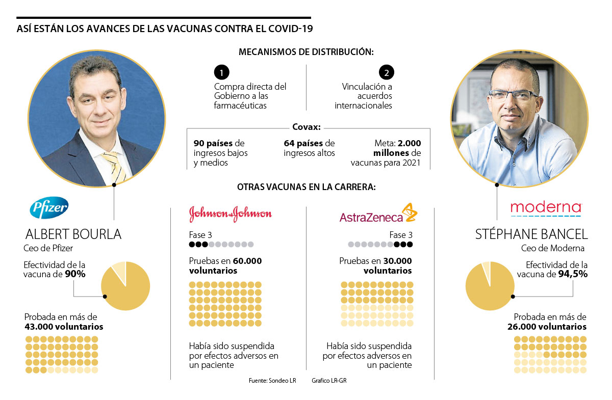 Hay que recordar que los gobiernos tienen dos formas de adquirir la vacuna covid; comprarla directamente a las farmacéuticas o vincularse a acuerdos internacionales como el Covax, al que está suscrito Colombia, cuyo Gobierno ya anunció que tiene un acuerdo con Pfizer para traer dosis en el primer trimestre de 2021, y luego vacunar a 20% de la población.