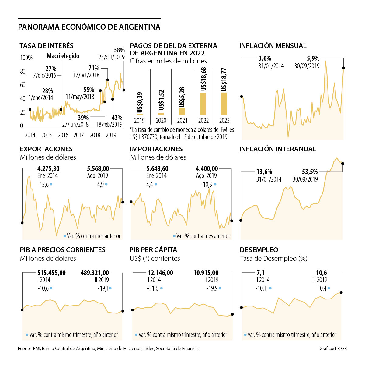 Ayer se celebraron las elecciones presidenciales de Argentina que con casi 81% de las mesas escrutadas y 47,65% de los votos destacaron como ganador, en primera vuelta, al opositor Alberto Fernández, frente a 40,87% del mandatario Mauricio Macri, según informó El Cronista. Esto aumenta el temor económico en Argentina, así como también en varios países de la región. El ascenso nuevamente de Cristina Fernández de Kirchner, como fórmula vicepresidencial, revive el peronismo en una economía en recesión.