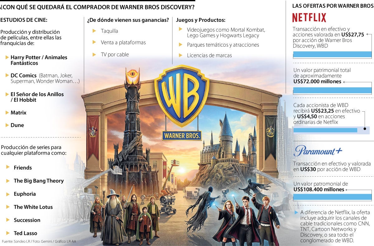 La disputa entre Netflix y Paramount para hacerse con Warner Bros Discovery, WBD, viene desde hace meses cuando empezaron las negociaciones que pretenden consolidar la industria del entretenimiento en Estados Unidos; sin embargo, la oferta de Netflix por US$83.000 millones, incluida la deuda o US$72.000 millones por las acciones, fue la primera en cumplir las expectativas del gigante.