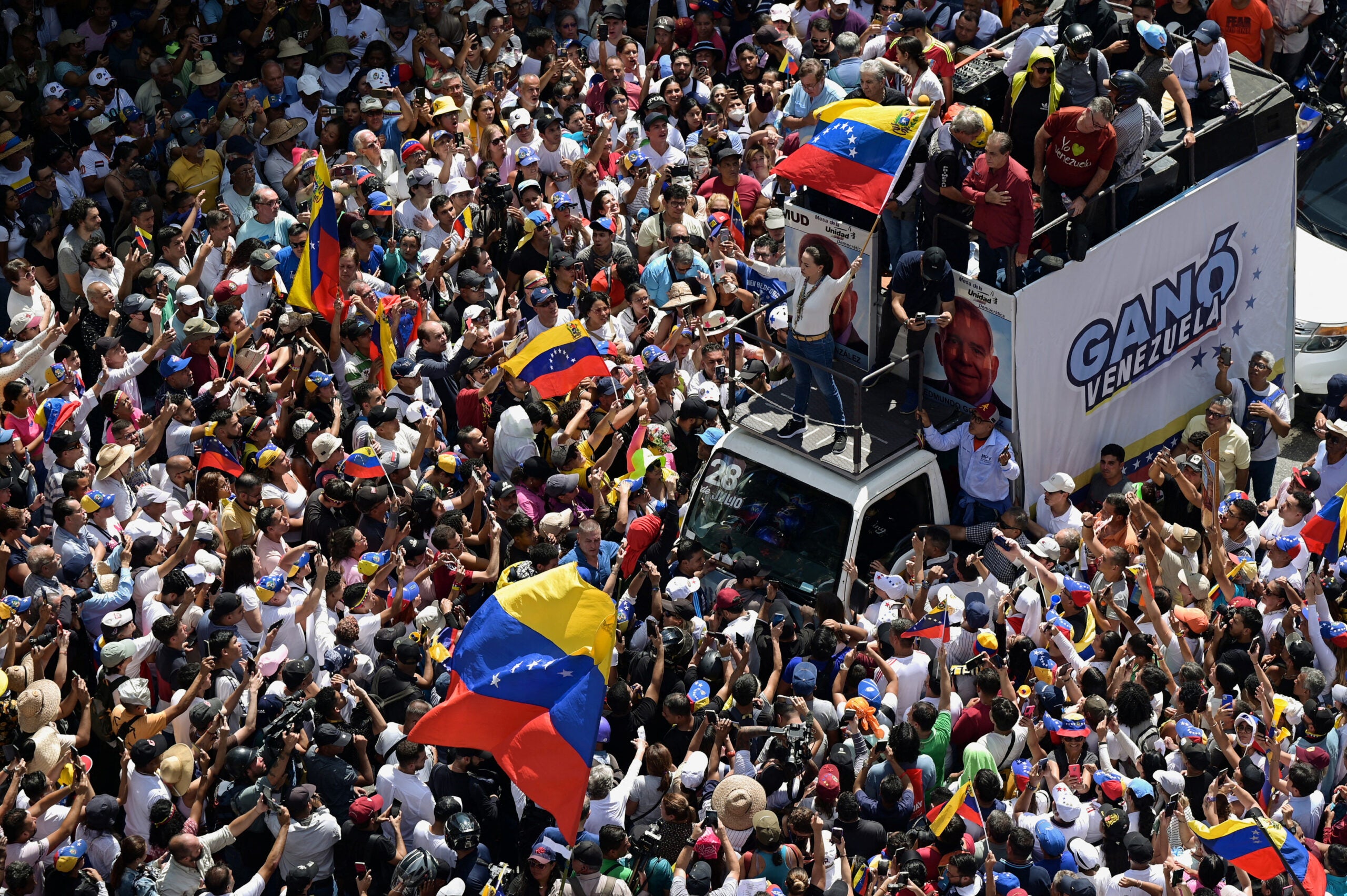 "He decidido venir aquí para apoyar a María Corina y Edmundo para poder tener un futuro en este país y construir una familia", dijo en Caracas Jesús Aguilar un estudiante de Teología de 21 años. "Sabemos que con este Gobierno actual no hay posibilidades de crecimiento, aunque me he visto tentado de salir del país".