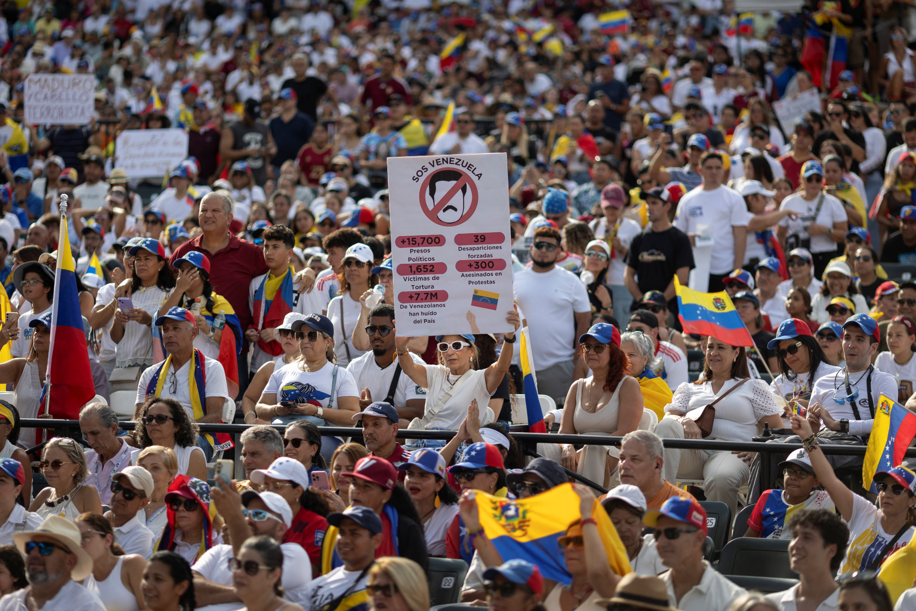 El exdiplomático Edmundo González, quien ganó la contienda electoral de acuerdo con los opositores, se ausentó de la manifestación.