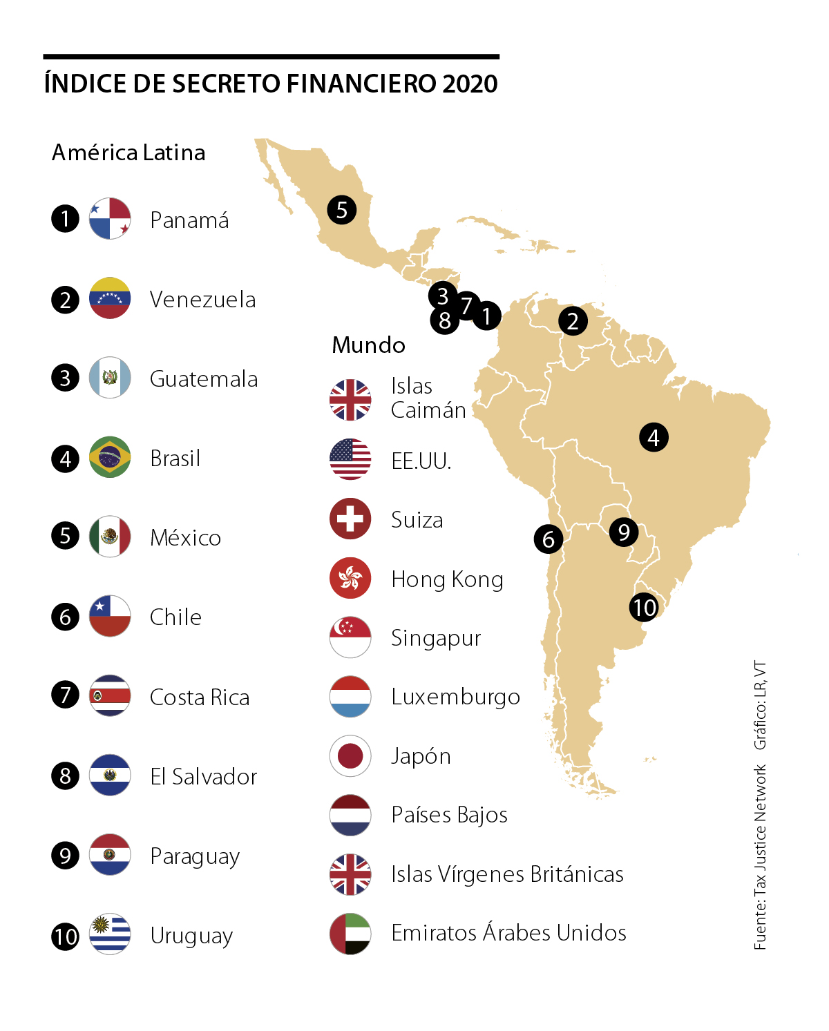 México se encuentra dentro del top cinco de países de América Latina que más facilita a las personas esconder sus activos, de acuerdo con el Índice de Secreto Financiero 2020, elaborado por la ONG británica Tax Justice Network.
