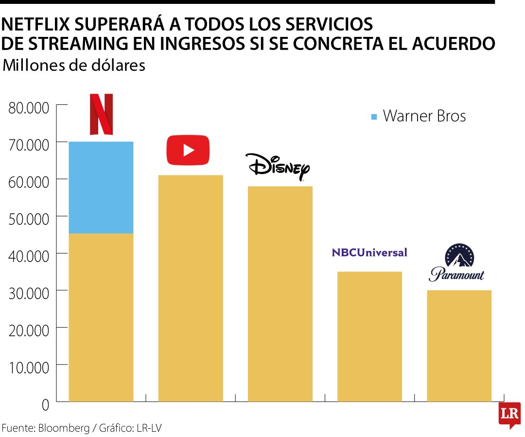 La oferta, que asciende a US$82.700 millones incluida la deuda y viene acompañada de una compensación de rescisión de US$5.800 millones por parte de Netflix, se enfrentará probablemente a un fuerte escrutinio antimonopolio.