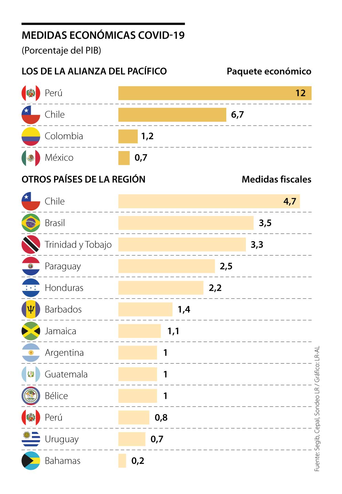 Dicha cifra convierte a Perú en el país de la Alianza del Pacífico con el paquete económico más robusto en relación a su PIB para atender la crisis hasta ahora. Según información de la Secretaría General Iberoamericana (Segib), este país destinará en total US$25.000 millones, de los cuales se invertirán montos iguales para contener el virus, prestar dinero a empresas con garantías y la reactivación.