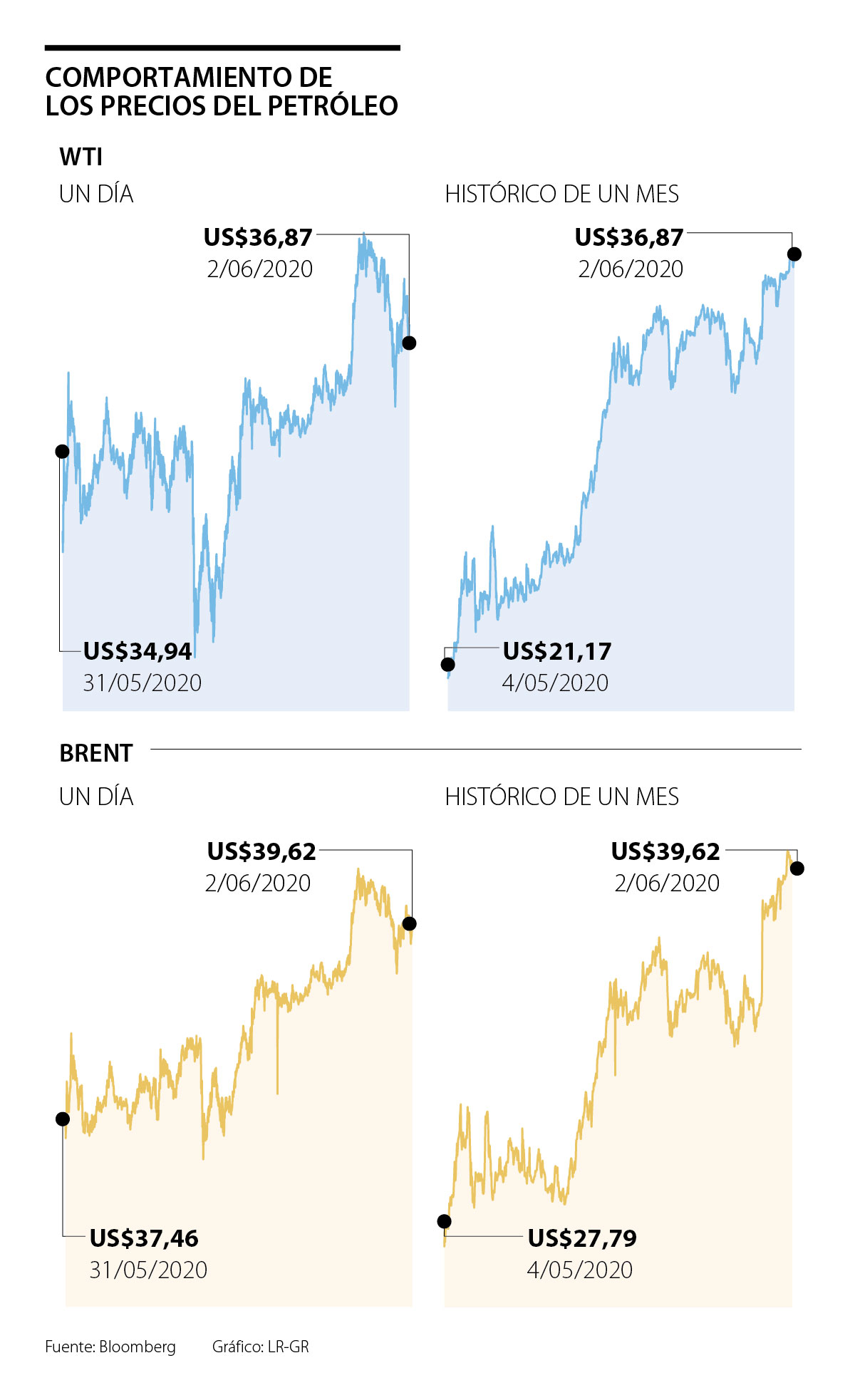 Con el cierre de la jornada previa, el WTI completó un avance de 74% frente al precio que registró el 4 de mayo que fue de US$21,17, mientras que el Brent recuperó más de 40% de su valor, luego de iniciar el quinto mes del año en US$27,79. Por ello, Julio César Vera, presidente de la Fundación Xua Energy, dijo que “lo lógico es que la Opep+ mantenga las reducciones, de tal forma que el petróleo pueda ubicarse en el nivel de US$45 - US$55 por barril”.