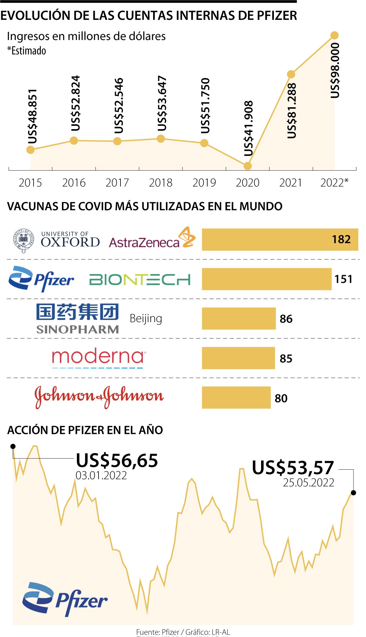 La pandemia ha beneficiado el negocio de Pfizer y su reputación. En 2021, generó US$81.300 millones en ventas y registró una ganancia de US$22.000 millones, impulsada en parte por la venta de su vacuna contra el coronavirus, la primera de las inyecciones aprobadas para su uso en los EE.UU. Ese éxito científico y comercial ha cambiado la reputación de la compañía , desde la más grande y mala de las grandes farmacéuticas hasta la compañía que ayudó a salvar millones de vidas durante la pandemia.