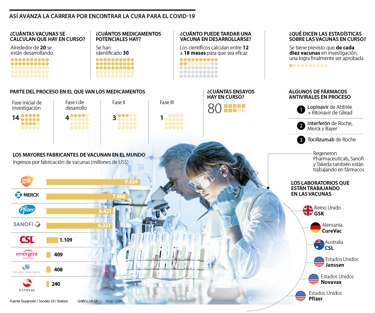 A medida que el covid-19 continúa sumando miles de enfermos alrededor del mundo cada día, los científicos y farmacéuticas como Pfizer, Sanofi y Johnson & Johnson están en una carrera contra el tiempo para descubrir una vacuna o un medicamento que combata este patógeno que lleva más de cuatro meses expandiéndose por todos los rincones del planeta.