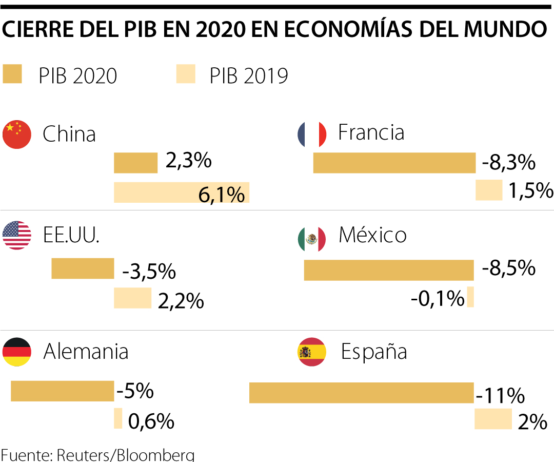 China fue la única economía en el mundo que logró reportar un crecimiento durante 2020, mientras tanto España se desplomó 11%