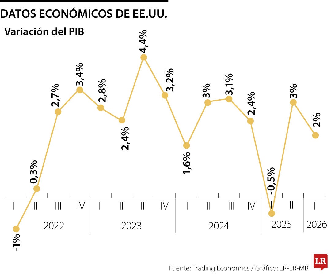 Según una estimación inicial publicada el jueves por la Oficina de Análisis Económico, el producto interno bruto ajustado a la inflación aumentó 2% anualizado en el primer trimestre, después de que el cierre del gobierno federal, el más largo de la historia, limitara el crecimiento en los últimos meses de 2025.