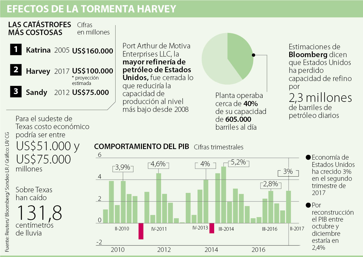 Según analistas consultados por Bloomberg, las labores que vendrán después de la tormenta permitiría que durante el cuarto trimestre entre octubre y diciembre, se dé un crecimiento de 2,4% en el PIB del país, el cual durante este segundo trimestre creció 3% según informó el Departamento de Comercio estadounidense, y que está a unos pasos de la proyección que dio el presidente Donald Trump.