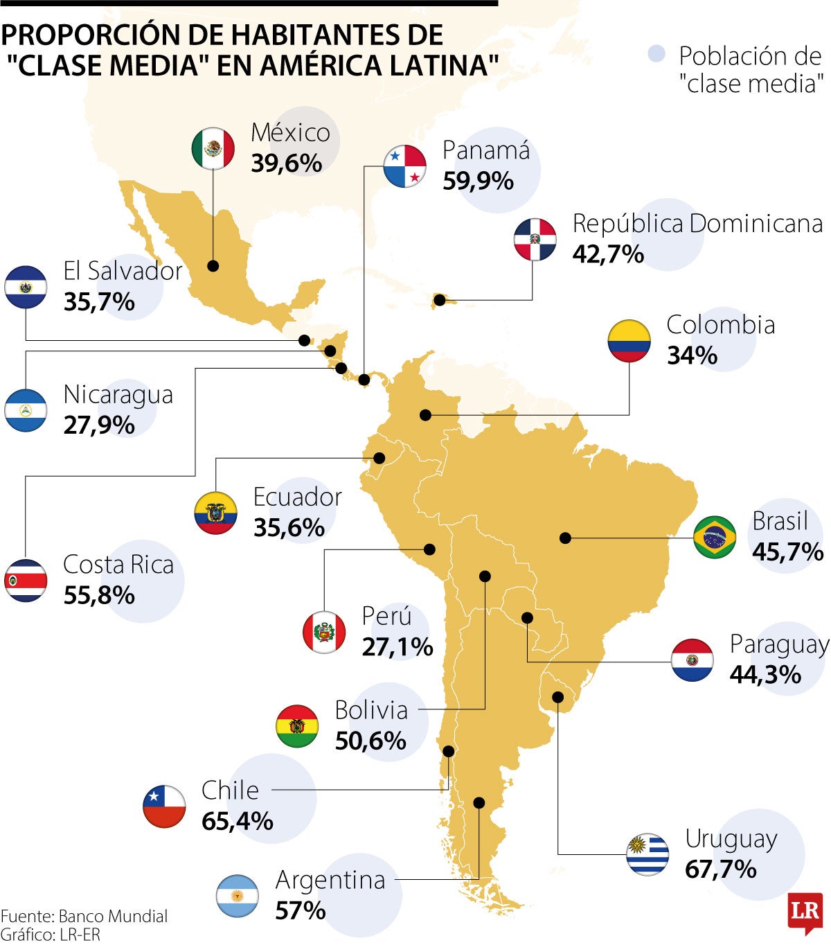 Sin embargo, el país se ubica de decimotercero entre 15 economías estudiadas;Uruguay y Chile tienen los mejores registros 67,7% y 65,4% de la población.