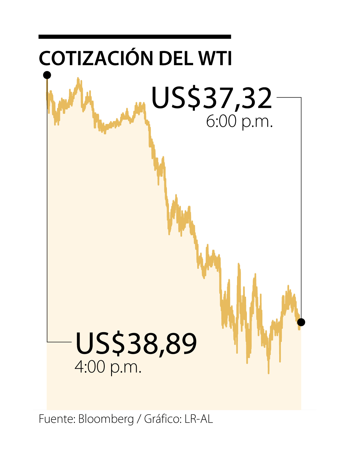 El precio al cierre de la bolsa fue de US$39,21 con una caída de 4,83% en el día. Por su parte la referencia americana WTI se cotizó a US$37,49 el barril lo que representó una caída de 5,26% en la jornada, valores que tenía al inicio de octubre.