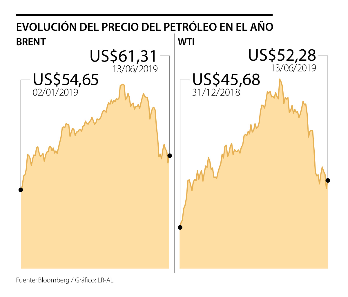 En horas de la mañana de ayer, el Brent logró ascender hasta 4,45% a US$62,64 el barril, mientras que el West Texas Intermediate (WTI) escaló hasta 4,5% a US$53,45. Sin embargo, después de mediodía el avance era de 2%.