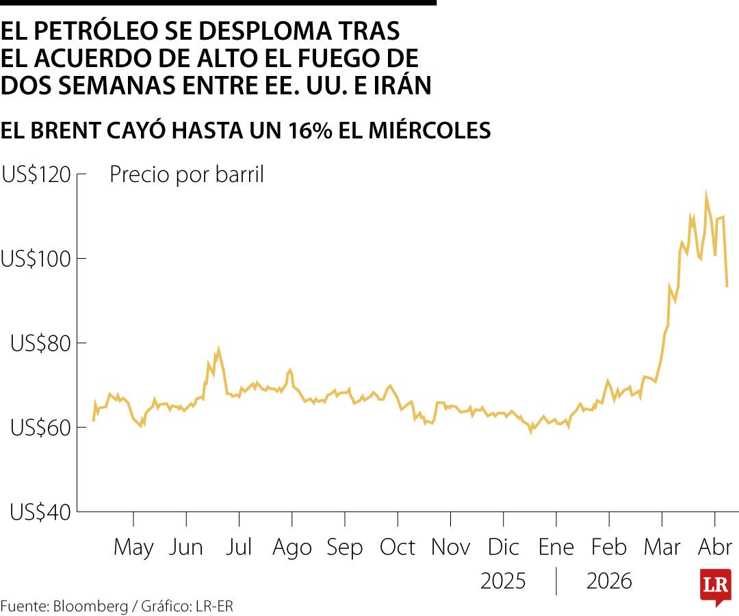 Los precios del petróleo y del gas se desplomaron después de que Estados Unidos e Irán acordaran un alto el fuego de dos semanas destinado a detener la campaña militar estadounidense-israelí a cambio de la reapertura del estrecho de Ormuz.
