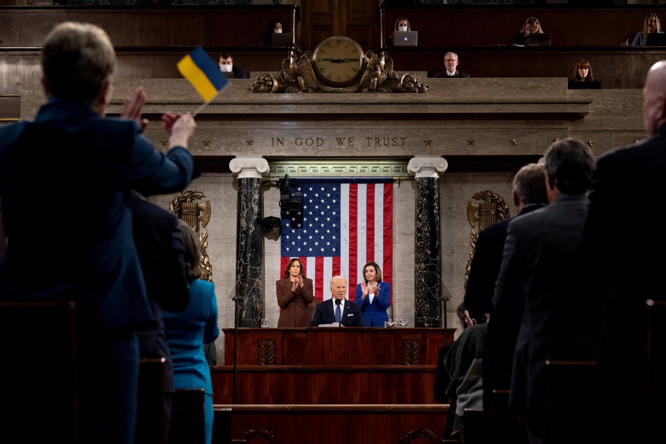 Los comentarios del presidente sobre Ucrania a menudo generaron aplausos tanto de republicanos como de demócratas, y la embajadora de Ucrania, Oksana Markarova, asistió como invitada de la primera dama, Jill Biden.
