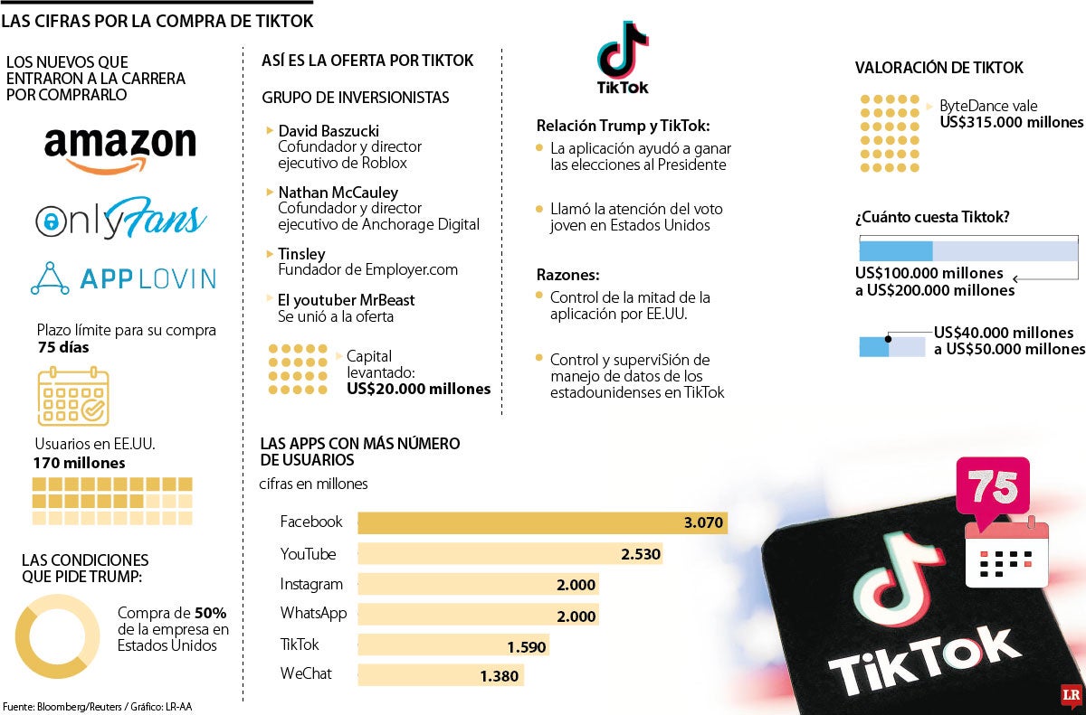 A esto se le suman el youtuber Mrbeast, AppLovin y el grupo de inversionistas liderado por David Baszucki, cofundador y director ejecutivo de Roblox, quien levantó un capital inicial de US$20.000 millones para su compra. Sin embargo, según el analista internacional de Wedbush, Dan Ives, la app china vale US$100.000 millones incluyendo el algoritmo.