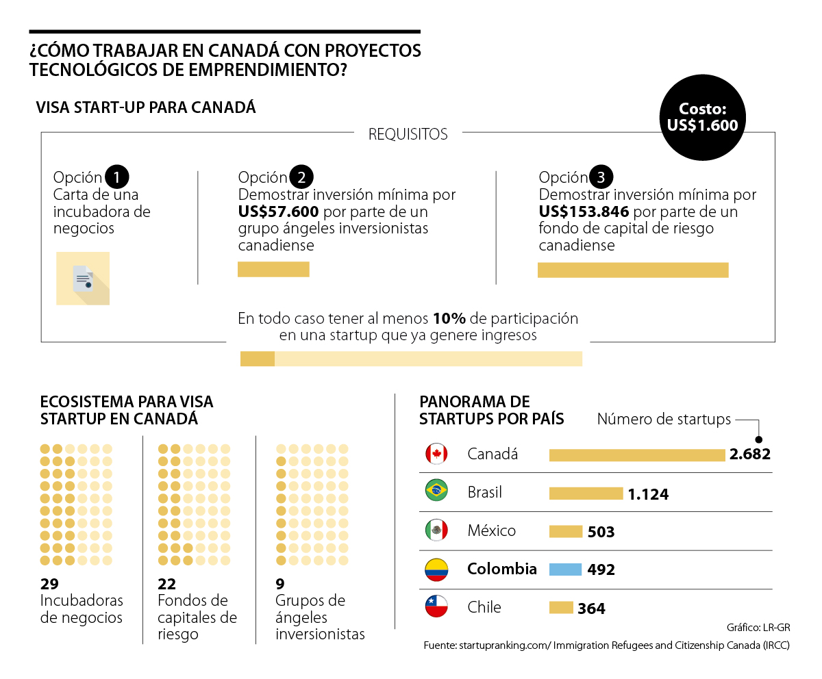 Un emprendedor que quiera obtener una visa startup debe tener una participación de al menos 10% en una empresa de innovación que genere ingresos. Al mismo tiempo, una incubadora de negocios autorizada debe emitir una carta que soporte su aplicación. Otra opción es demostrar que su compañía es receptora de una inversión de al menos US$57.600 por parte de algún grupo de ángeles inversionistas de Canadá, o de US$153.846 por parte de un venture capital radicado en este país. De cumplir las expectativas posteriores en creación de empleo y generación de ingresos, el emprendedor podrían obtener la residencia.
