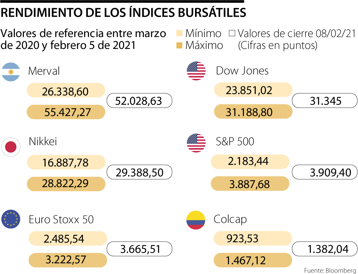 Las bolsas de las Américas registraron cierre prometedor. Por un lado el Dow Jones subió 0,28%, hasta los 31.345 puntos, el S&P 500 se anotó 19,15 décimas, hasta los 3.905 puntos y el Nasdaq se animó con subidas de algo más de 0,5%, hasta los 13.972 puntos, dichos reportes son el producto de las nuevas medidas anunciadas por el presidente Biden y el aumento del apetito de los inversores por el buen panorama económico que ofrece el rápido despliegue de las vacunas.