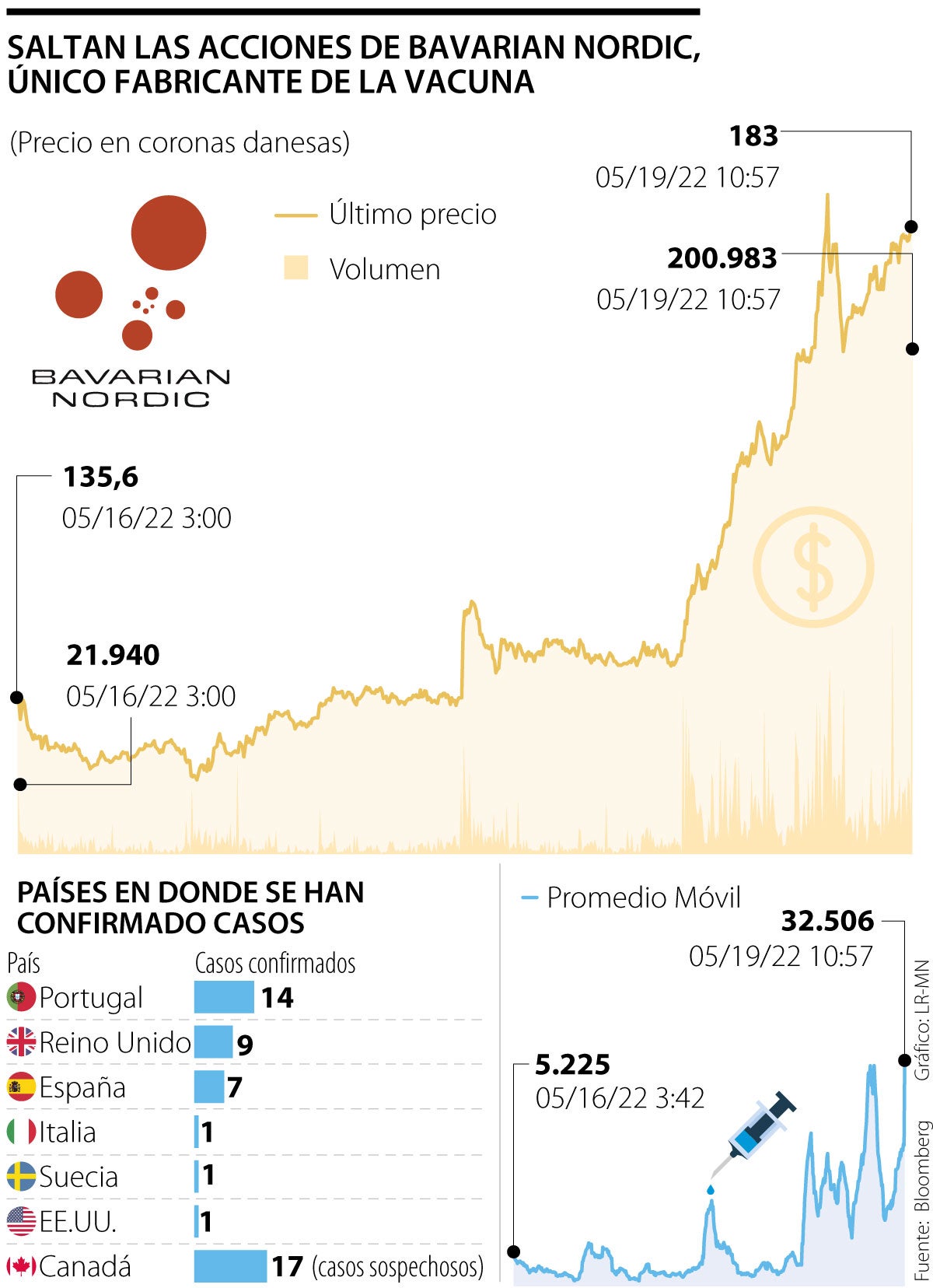 La compañía danesa Bavarian Nordic ganó más de 40% en las operaciones de Copenhague a medida que se confirmaban los casos
