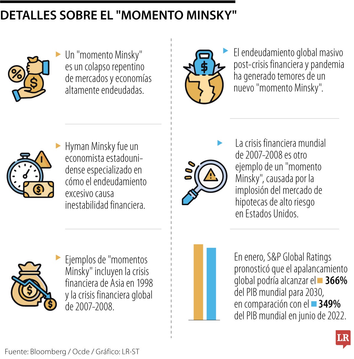 La sola mención de un “momento Minsky” –un colapso repentino de los mercados y las economías que están enganchados a la deuda– es suficiente para hacer temblar a los responsables políticos. La teoría se deriva del trabajo de Hyman Minsky, un economista estadounidense que se especializó en cómo el endeudamiento excesivo alimenta la inestabilidad financiera. Los altísimos niveles de deuda en todo el mundo, junto con las altísimas valoraciones de los mercados financieros, han mantenido la teoría de Minsky en un lugar destacado, lo que ha suscitado advertencias del Fondo Monetario Internacional y otros. La secretaria del Tesoro de Estados Unidos, Janet Yellen, una vez calificó su trabajo como “ lectura obligatoria ”.