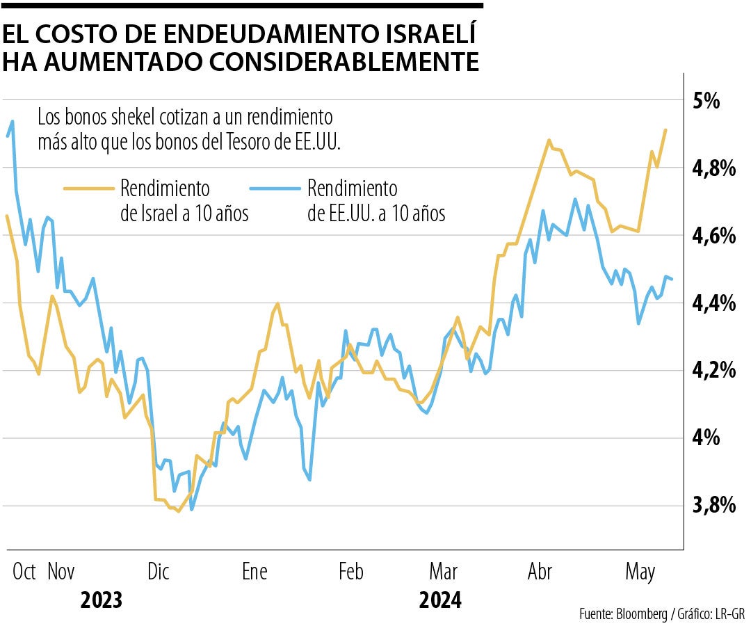 La factura de guerra de Israel asciende ya a US$16.000 millones, lo que eleva el déficit presupuestario de 12 meses hasta el 7% del producto interior bruto en abril. El Gobernador del Banco de Israel, Amir Yaron, ha pedido repetidamente al Gobierno que adopte una política fiscal responsable ante el aumento de los gastos de defensa.