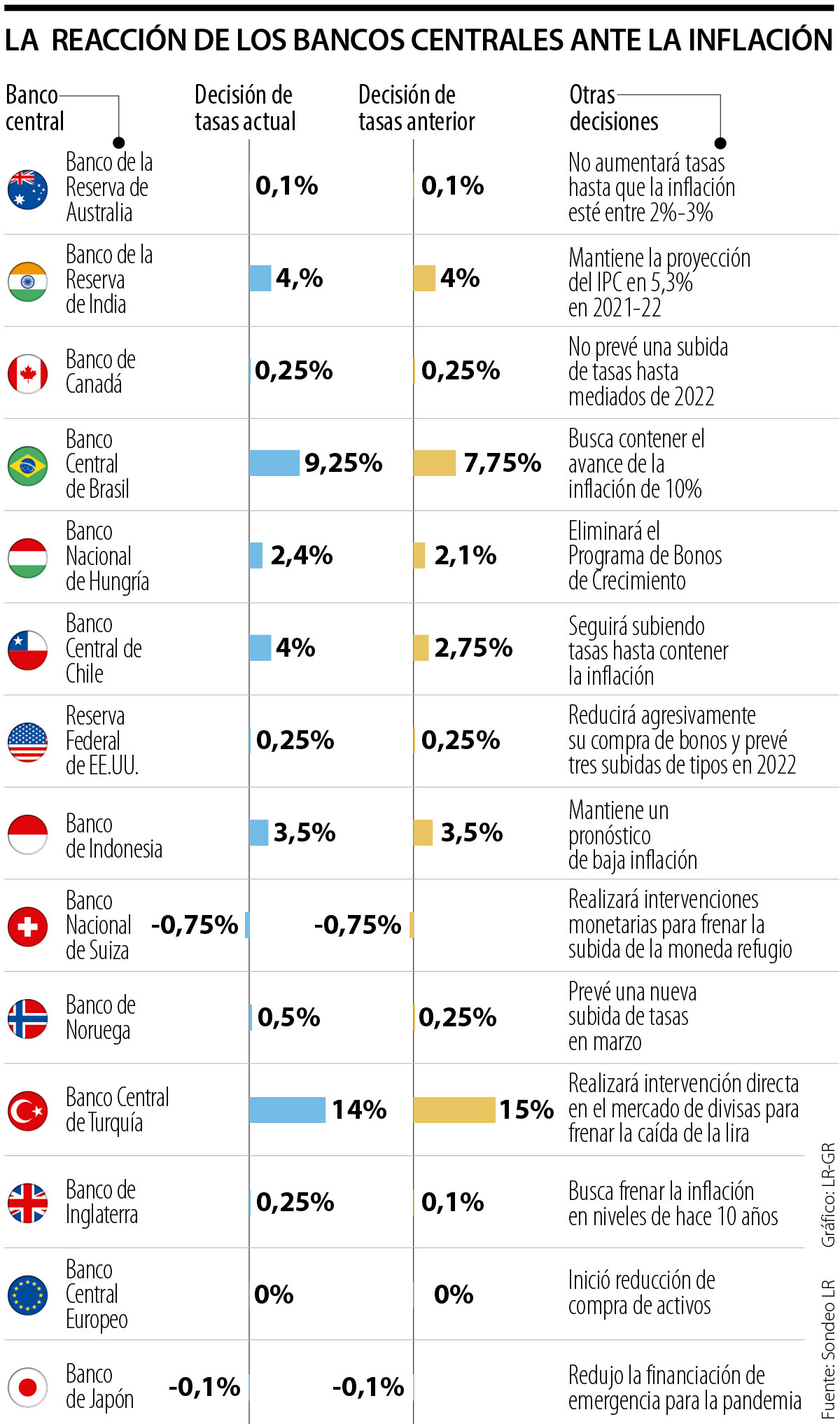En Latinoamérica estas presiones también han hecho subir las tasas en Chile, Brasil, México, Perú, Colombia y posiblemente también en Argentina.