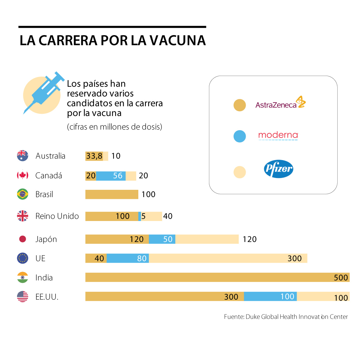 El Reino Unido todavía necesita otras vacunas para llegar a la línea de meta a fin de inmunizar a una cantidad suficiente de su población para poner fin a la pandemia. El país ha ordenado dosis suficientes de la inyección de dos dosis de Pfizer-BioNTech para incocular 20 millones de personas, menos de un tercio de la población. Si bien las compañías han dicho que pueden producir 1.300 millones de dosis el próximo año, gran parte de ese suministro ya se ha expresado en acuerdos para enviar cientos de millones de inyecciones a Europa, Estados Unidos, Japón y otros lugares.