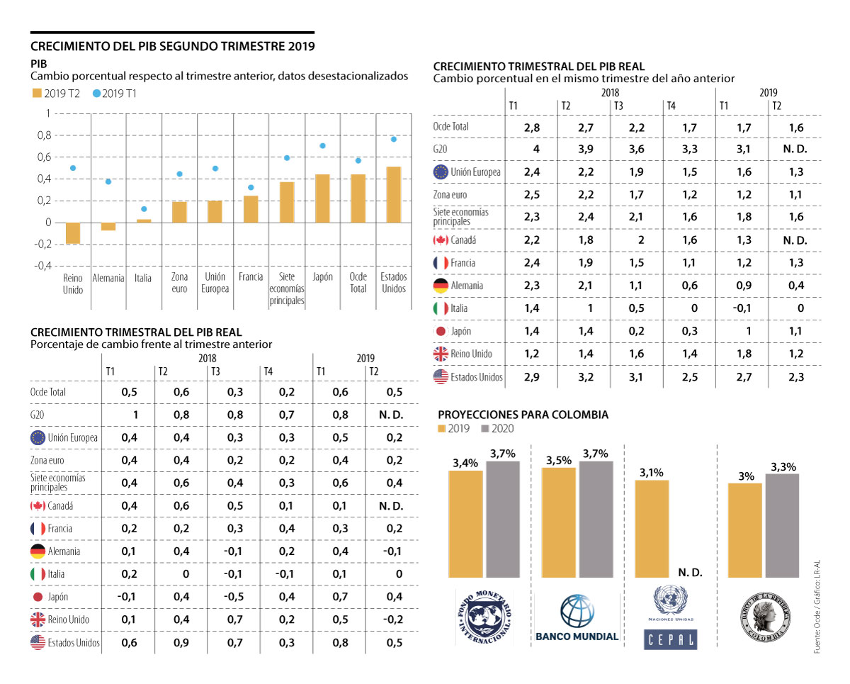 Según el reporte de crecimiento del PIB para el segundo trimestre de 2019 de la Ocde, los países del bloque crecieron apenas 0,5%.