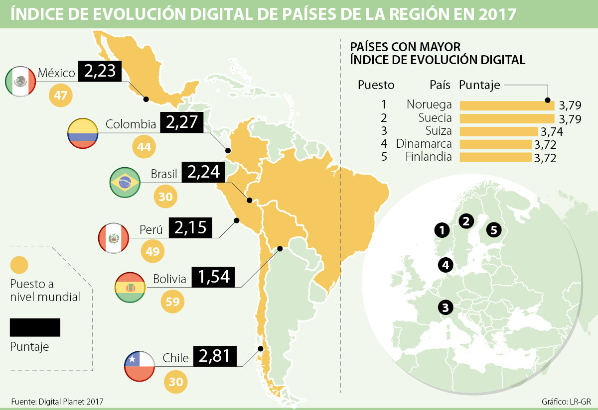 El cálculo del puntaje bajo el que se hizo el listado tiene cuatro pilares fundamentales: las condiciones de la infraestructura (acceso a las herramientas, además de su cobertura y calidad); el entorno institucional (desempeño en el ecosistema digital); las condiciones de demanda (capacidad y deseo de gastar, inclusión de moneda digital y consumo digital), y los procesos de innovación y cambio (capacidad startup, oportunidades y sofisticación en los modelos de negocio).