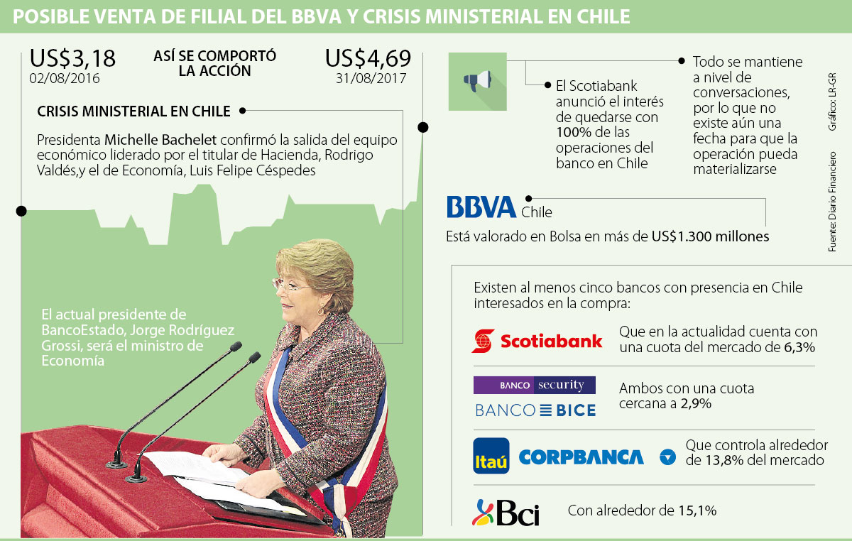 Además de las renuncias, el país vio un movimiento bancario importante, dado que Bbva Chile confirmó que Scotiabank había presentado una gran oferta para hacerse con la totalidad de su banco.