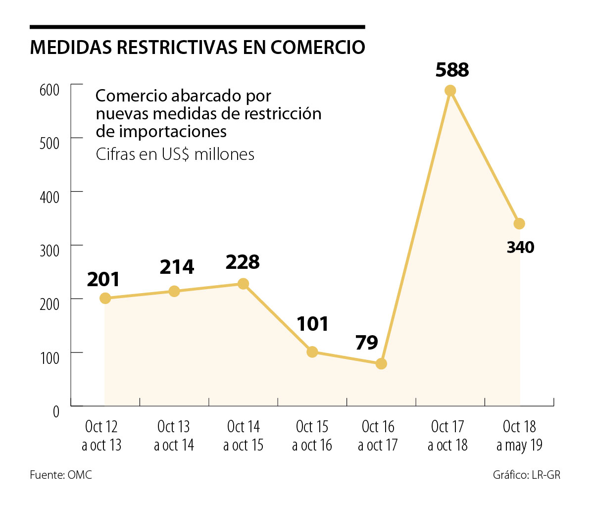“Juntos, estos dos períodos representan un aumento dramático en la cobertura comercial de las medidas restrictivas de las importaciones. La tendencia a la baja identificada entre mediados de octubre de 2014 y mediados de octubre de 2017 ha sido reemplazada por un fuerte aumento en la cobertura comercial de las medidas restrictivas de las importaciones”, reza el documento.