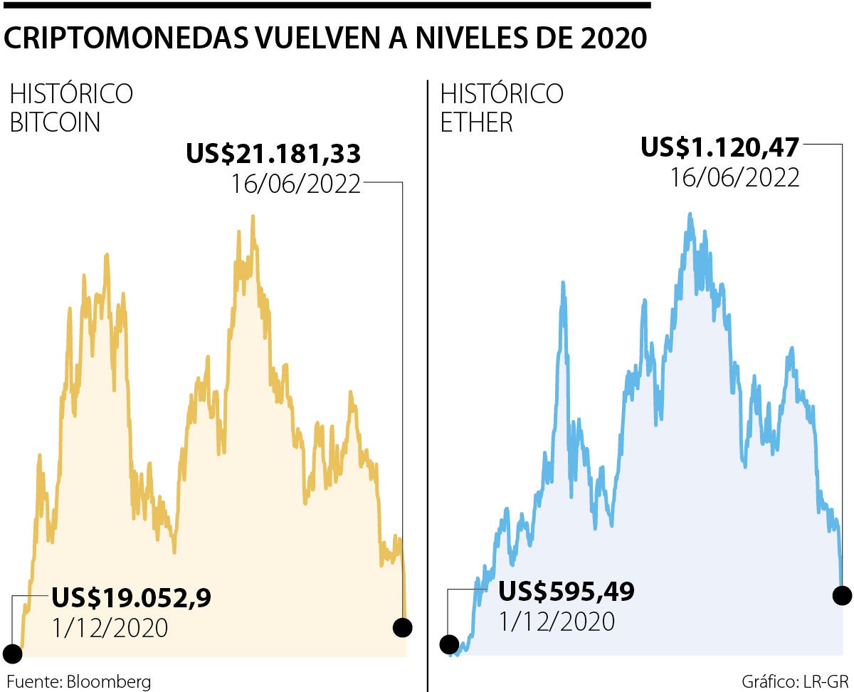 El precio del bitcoin continuó cayendo esta semana para cotizar apenas por encima de los US$20.000, mientras la liquidación de criptomonedas muestra pocas señales de disminuir.