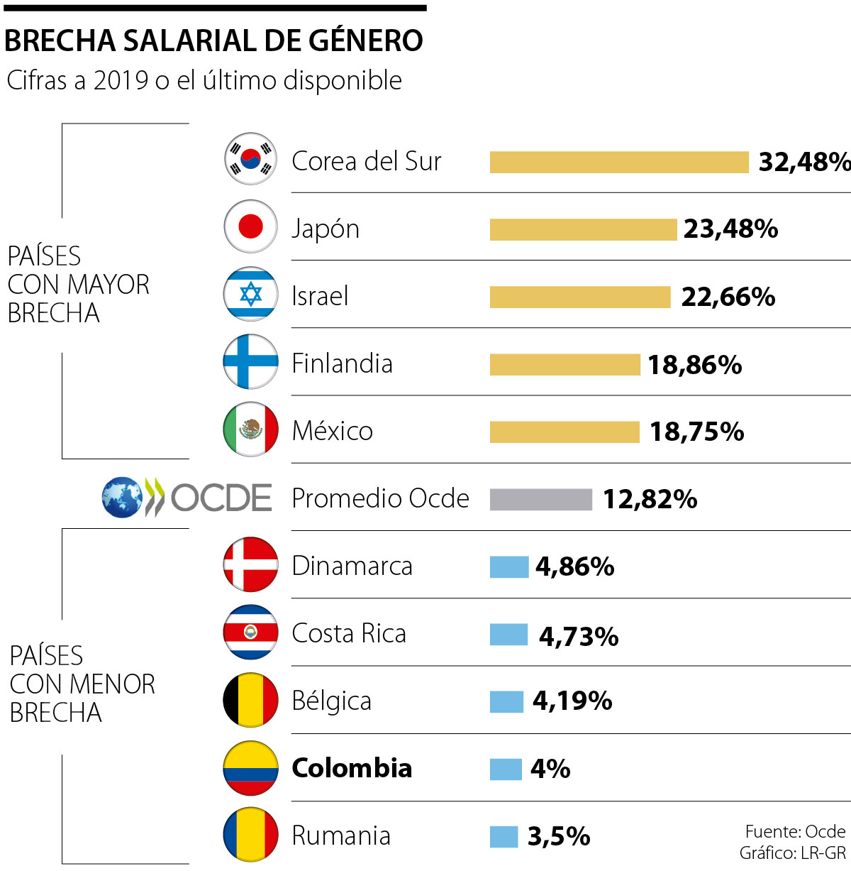 El promedio de la brecha salarial entre hombre y mujeres en los países que pertenecen a la Organización para la Cooperación y el Desarrollo Económicos (Ocde) es 12,8%. Sin embargo, este porcentaje varía entre las economías.