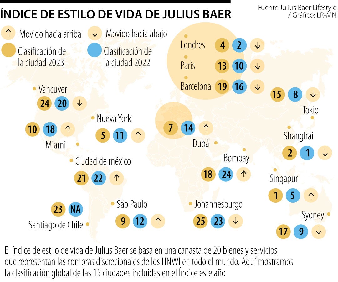 La riqueza ahora se trata tanto de garantizar la salud y la seguridad de la familia, tanto física como mental, además de intentar mantener un estilo de vida. Julius Baer Lifestyle, la empresa encargada del informe, aseguró que para este reporte analizaron el costo de una cesta de bienes y servicios representativa del "buen vivir" en 25 ciudades de todo el mundo. "Esto proporciona una visión general del costo relativo de mantener un estilo de vida de alto poder adquisitivo en varios de los principales centros urbanos", aseguraron.