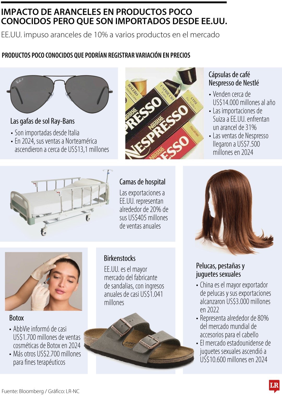 También representa aproximadamente 70% de la producción mundial de pestañas postizas, así como 70% de los juguetes sexuales. El mercado estadounidense de juguetes sexuales ascendió a US$10.600 millones en 2024, según Grand View Research, con China e India entre las principales fuentes. Se les han impuesto aranceles de 34% y 26%, respectivamente.
